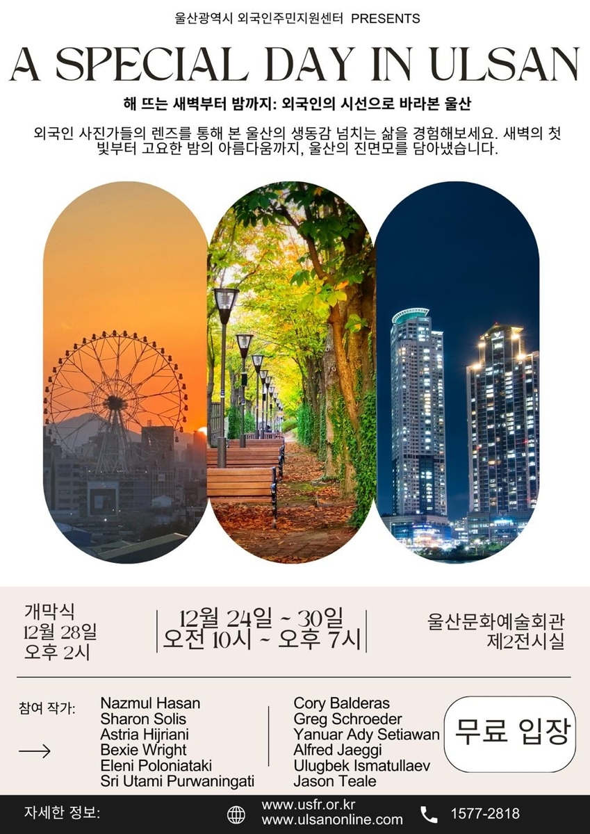 (울산=연합뉴스) 장영은 기자 = 울산시외국인주민지원센터가 24일부터 30일까지 울산문화예술회관 제2전시장에서 아트울산 사진전시회 'A Special day In Ulsan'을 개최한다.