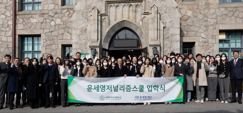 ▲ 윤세영 저널리즘스쿨은 2일 17기 입학식을 열었다. 기자반 27명, PD반 14명 등 신입생 41명에게 2년 동안 무상으로 언론계 실무와 저널리즘 윤리 등을 교육한다. 윤세영 저널리즘스쿨은 서암 윤세영 재단의 후원으로 '이대 프론티어 저널리즘 스쿨'을 확대 개편한 예비언론인 프로그램이다. 2007년 이후 지금까지 468명의 기자와 PD를 배출했다. (서울=연합뉴스)