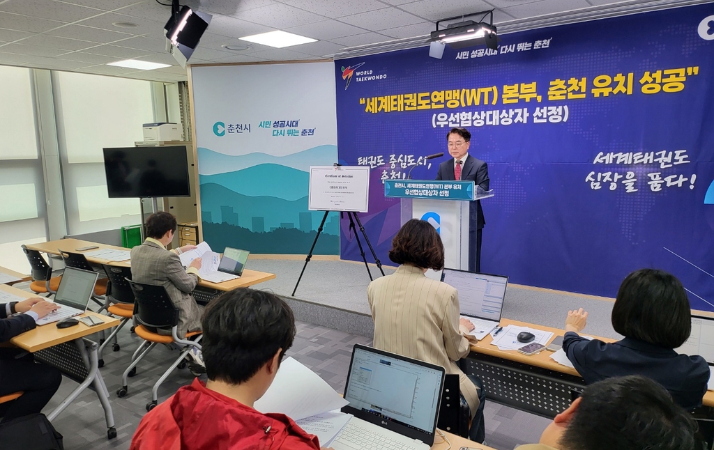 (춘천=연합뉴스) 이상학 기자 = 강원 춘천시가 24일 세계태권도연맹(WT)의 본부건립 우선협상대상 도시로 선정되자 환영과 함께 지역 경기를 끌어올리는 마중물이 될 것이라는 기대감을 보였다.