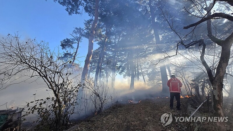 (강릉=연합뉴스) 유형재 박영서 기자 = 29일 오후 2시 10분께 강원 강릉시 운정동에서 산불이 나 산림 당국이 진화 헬기 2대와 장비 23대, 진화대원 72명을 투입해 20여분 만에 진화했다.