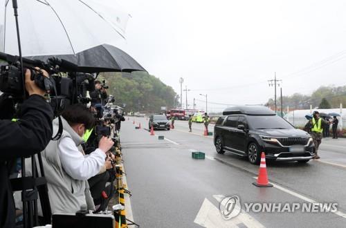 To prevent possible congestion, the military and police strictly controlled all vehicles passing through the gate. About 30 to 40 journalists were also waiting to cover the K-pop star's arrival, but authorities cordoned off the road leading to the main gate.