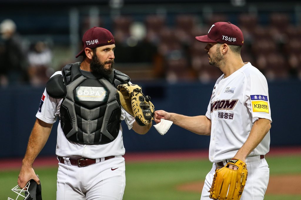Brigham had a 3.26 ERA in five starts with Freitas behind the dish, compared to a 4.22 ERA throwing to Lee Ji-young in three games. Jokisch had a 1.13 ERA with Freitas as his catcher in three starts, and a 2.78 ERA in 11 starts with Park Dong-won as his batterymate.