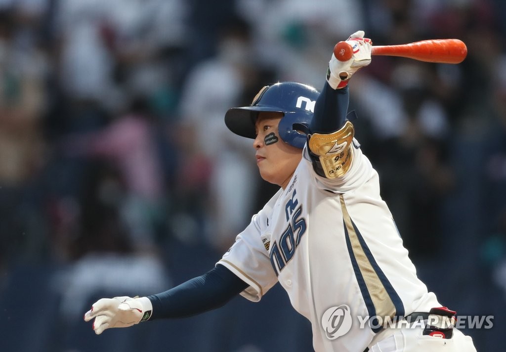| ▲ In this file photo from June 27, 2021, Kwon Hui-dong of the NC Dinos hits a single against the SSG Landers in the bottom of the seventh inning of a Korea Baseball Organization regular season game at Changwon NC Park in Changwon, 400 kilometers southeast of Seoul. (Yonhap) |