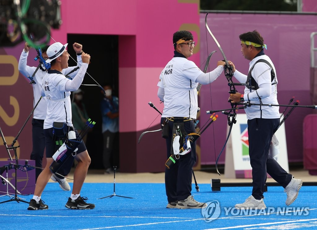 TOKYO, July 26 (Yonhap) -- South Korean teenage archer Kim Je-deok screamed and fist-pumped his way to top of the Tokyo Olympic podium for the second time in three days Monday, adding the men's team gold medal to the mixed team event title from the weekend.