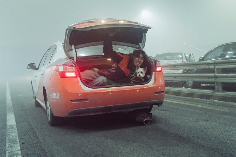 극 중 사고 현장에서 맹견들에 쫓기던 견인차 기사 조박(주지훈 분)이 달리는 자동차의 열린 트렁크 안으로 뛰어드는 장면도 그렇게 만들어졌다.