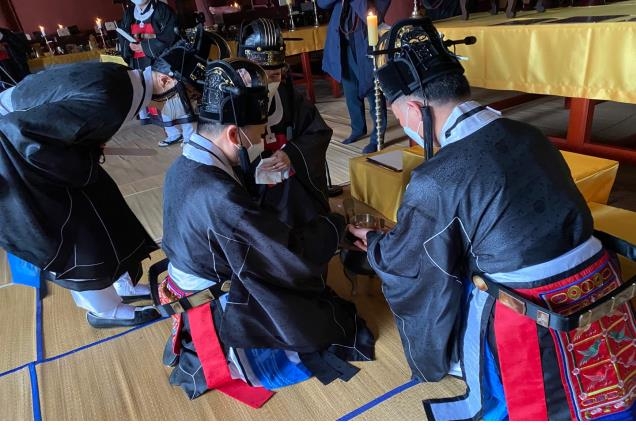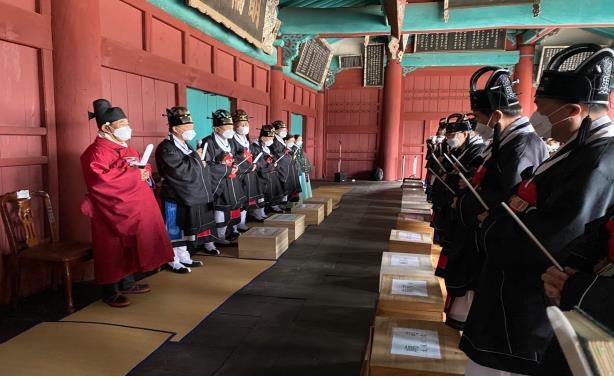 이날 행사는 '코로나19' 상황을 고려해 문묘제례악 연주와 무용은 생략하는 등 성균관 임직원 등을 중심으로 축소 진행됐다.