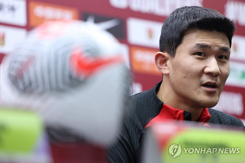 | ▲ 김민재 '혹사논란? 모든 선수가 힘들어, 부상없이 뛰는 것에 감사' (선전=연합뉴스) 김도훈 기자 = 20일 오후 중국 선전 유니버시아드 스포츠센터에서 열린 축구대표팀 공식 기자회견에서 김민재가 취재진 질문에 답하고 있다. 대표팀은 21일 이곳에서 중국과 2026 북중미 월드컵 아시아지역 2차 예선 C조 2차전을 치른다. 2023.11.20 superdoo82@yna.co.kr |