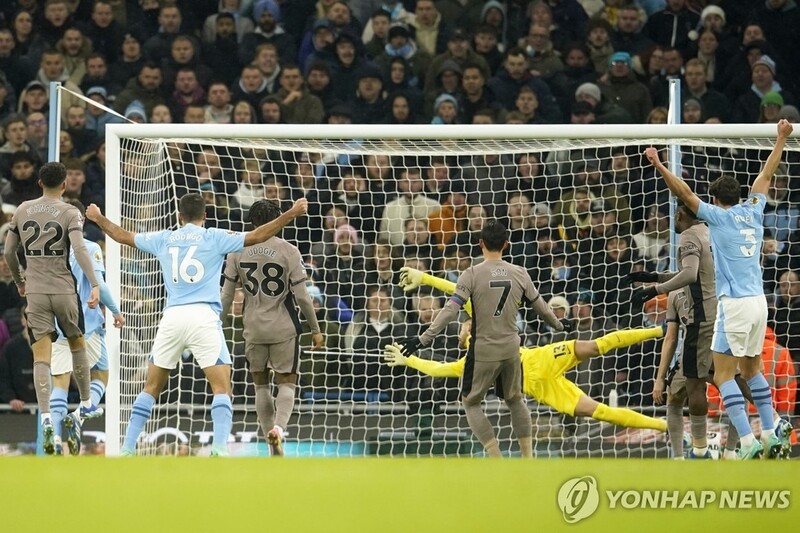 손흥민은 4일(한국시간) 영국 맨체스터의 에티하드 스타디움에서 열린 맨체스터 시티(맨시티)와의 2023-2024 EPL 14라운드 원정 경기에서 전반 6분 선제골을 터뜨리고 후반 24분엔 2-2 동점을 만드는 지오바니 로셀소의 득점 때 도움을 기록했다.