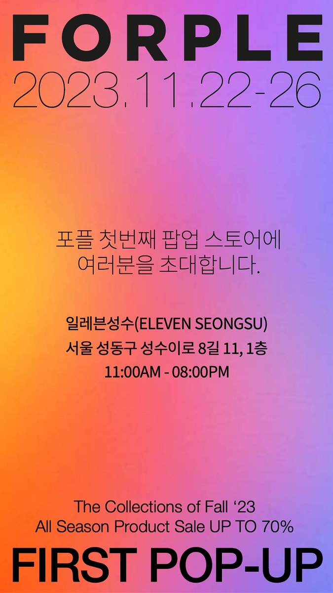 (서울=연합뉴스) 정준영 기자 = 서울시 중란구는 구내 패션 봉제 공동브랜드 '포플(FORPLE)'이 성수동 일레븐성수에서 단독 팝업스토어를 26일까지 연다고 23일 밝혔다.