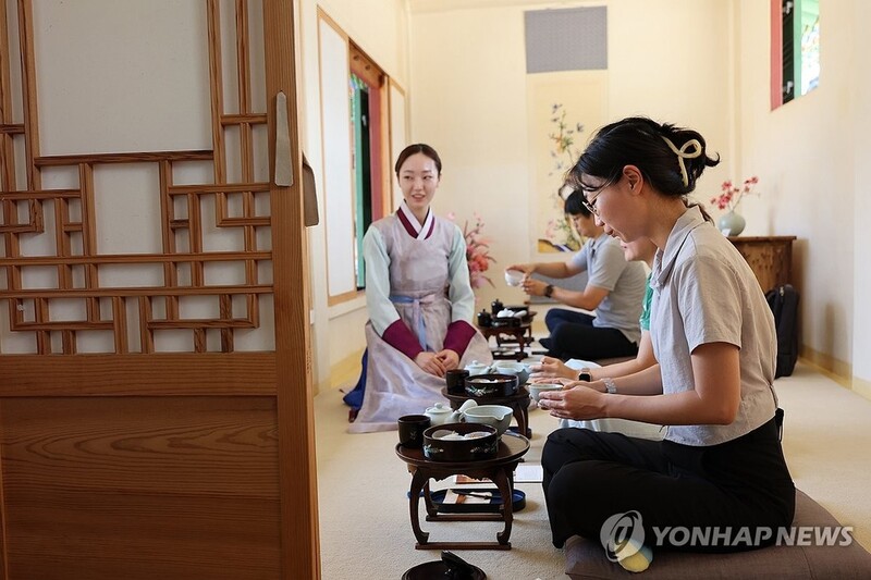 | ▲ 생과방에서 즐기는 궁중 병과와 약차 (서울=연합뉴스) 박동주 기자 = 5일 오후 서울 경복궁 생과방에서 경복궁 생과방 사전행사 참가자들이 궁중 병과와 약차 체험을 하고 있다. 2023.9.5 pdj6635@yna.co.kr |
