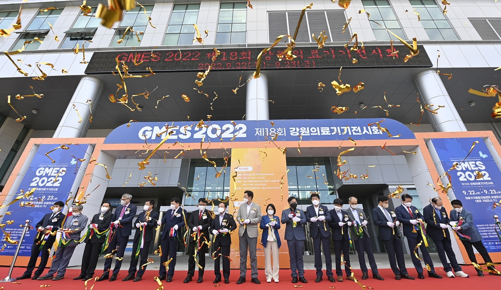 (원주=연합뉴스) 이재현 기자 = 제18회 강원의료기기전시회(GMES 2022)가 22일 원주기업도시 의료기기 종합지원센터에서 개막했다.