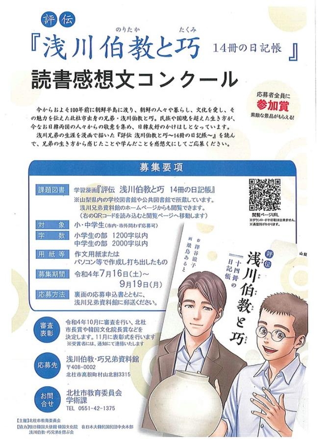| ▲ 日서 아사카와 노리타카·다쿠미 평전 독후감 공모 [日 후쿠토시 제공] |