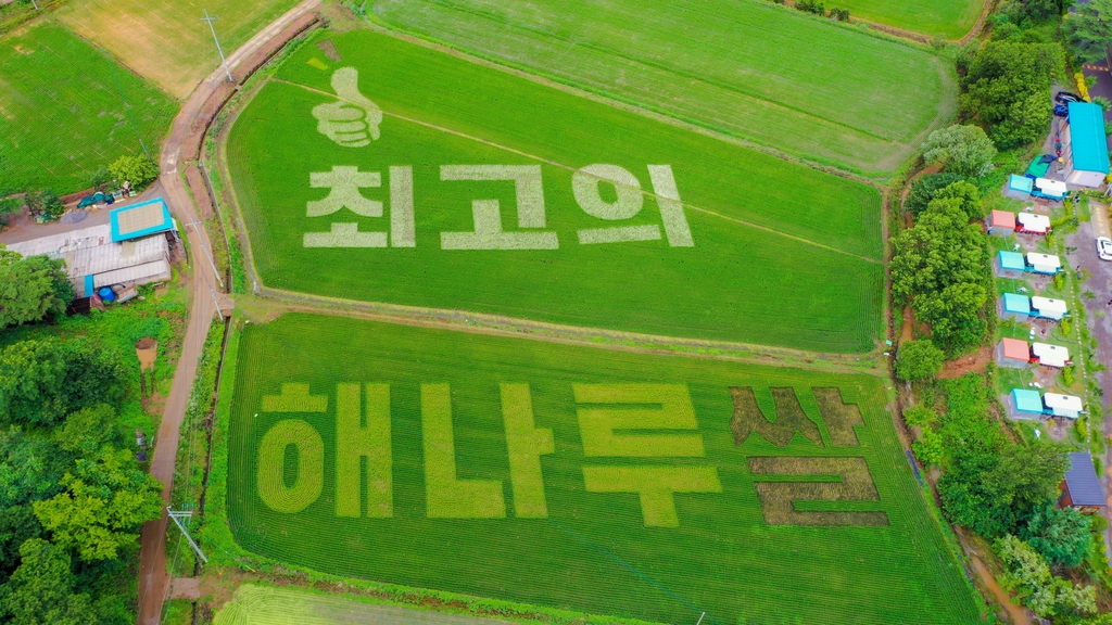 시 농업기술센터는 올해 삼선산 수목원 입구 논에 '최고의 해나루쌀'이라는 논 그림을 그려 지역 해나루쌀을 홍보했다.
