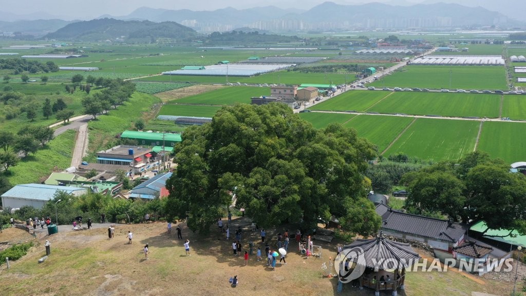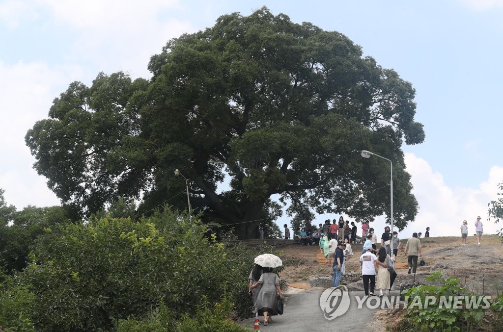 | ▲ 드라마 '우영우' 속 팽나무 인기 (창원=연합뉴스) 김동민 기자 = 29일 오후 경남 창원시 의창구 대산면 '창원 북부리 팽나무' 일대에 관광객 발길이 이어지고 있다. 2022.7.29 image@yna.co.kr |