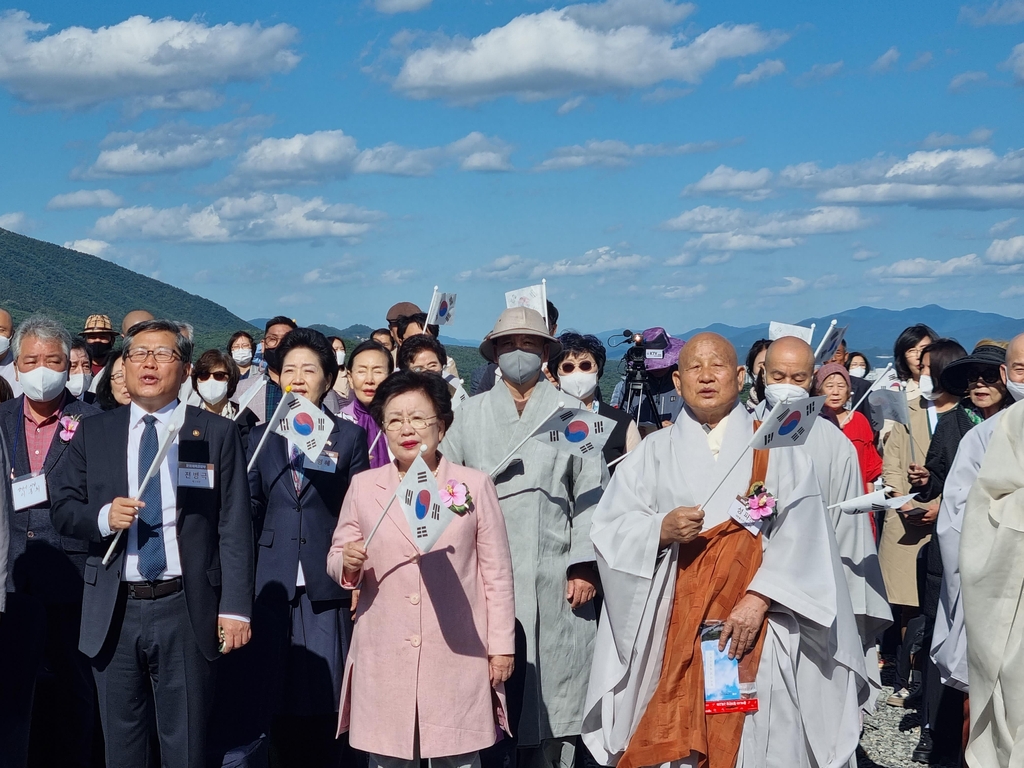 (서울=연합뉴스) 왕길환 기자 = 한지살리기재단(이사장 이배용)은 10일 오후 경남 양산시 통도사 내 장경각 앞에서 '한지의 날' 제정 선포식을 열었다.