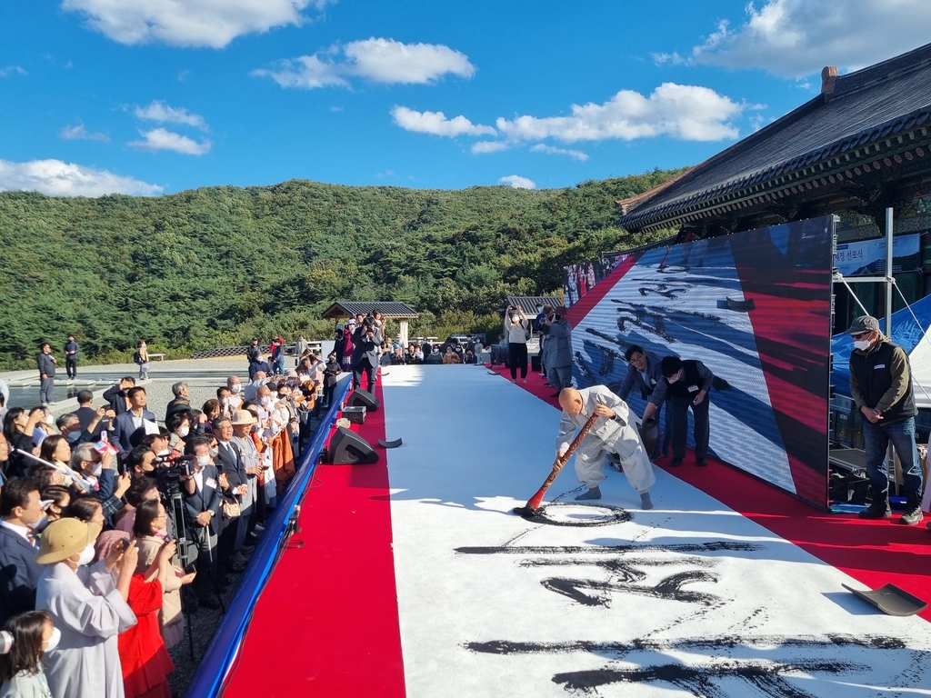 종정 성파 스님, 한지에 '세계제일 우리 한지의 날 선포' 휘호 써