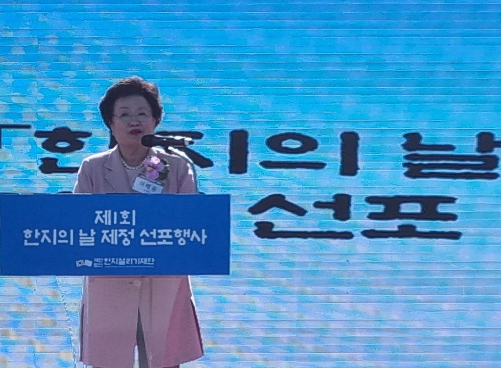 | ▲ 이배용 이사장이 인사말을 하는 모습 [한지살리기재단 제공] |