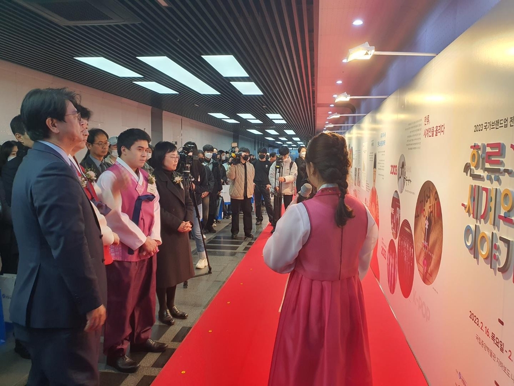 '한류, 세계와 이야기 하다'라는 주제로 한 '2023년 국가브랜드업 전시회'가 16일 오후 서울 용산구에 있는 국립중앙박물관 지하보도 나들길에서 막을 올렸다.