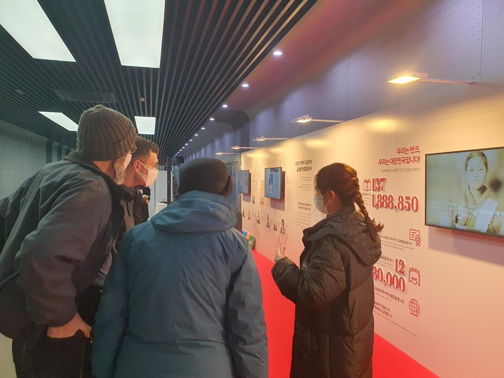 | ▲ 2023 국가 브랜드업 전시 둘러보는 관람객들 (서울=연합뉴스) 류효림 기자 = 16일 서울 용산구 국립중앙박물관 지하보도 나들길에서 연합뉴스·사이버외교사절단 반크 공동 주최로 열린 2023 국가 브랜드업 전시회에서 관람객들이 전시물을 살펴보고 있다. 2023.2.16