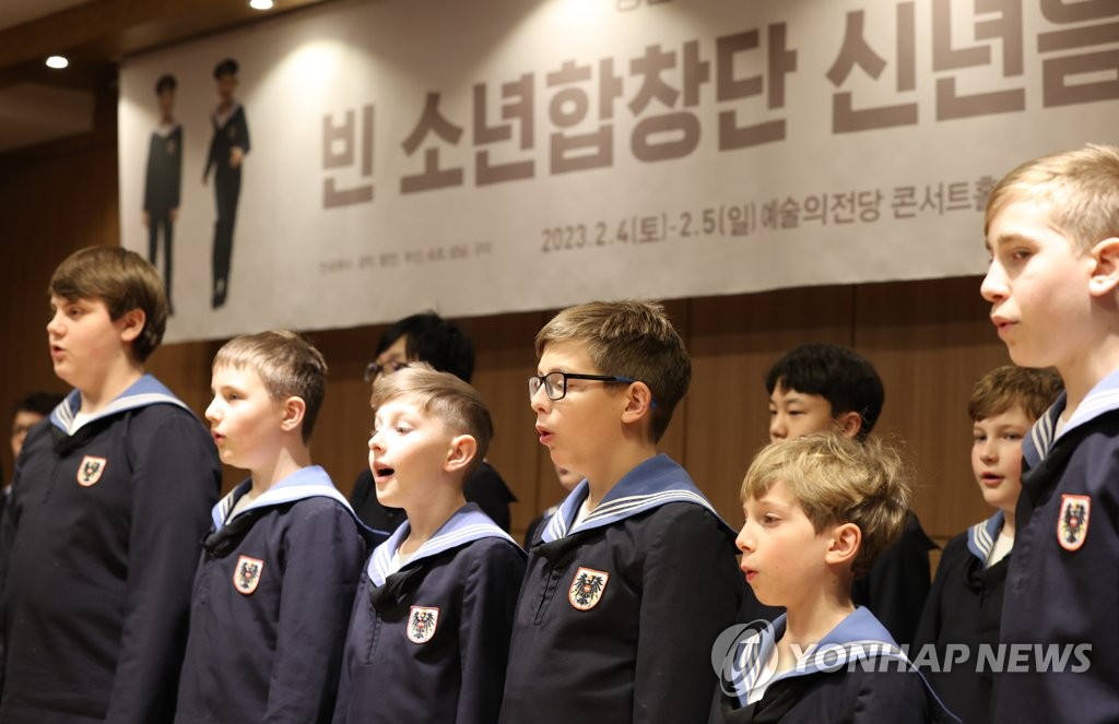 | ▲ 시연하는 빈 소년합창단 (서울=연합뉴스) 이재희 기자 = 26일 오후 서울 서초구 코스모스아트홀에서 열린 '빈 소년합창단 창단 525주년 기념 내한 투어' 기자간담회에서 합창단이 시연하고 있다. 2023.1.26 scape@yna.co.kr |