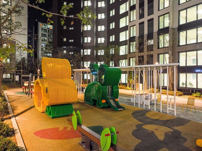 놀이터 디자인 부문 수상작 힐스테이트 홍은 포레스트의 '토끼 놀이터'는 세계 최초로 3차원(3D) 프린팅 기술을 통해 구현된 어린이 놀이시설물이다.