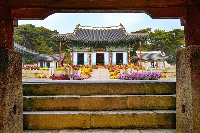 다른 사찰에서는 볼 수 없는 궁궐 양식이라고 한다.