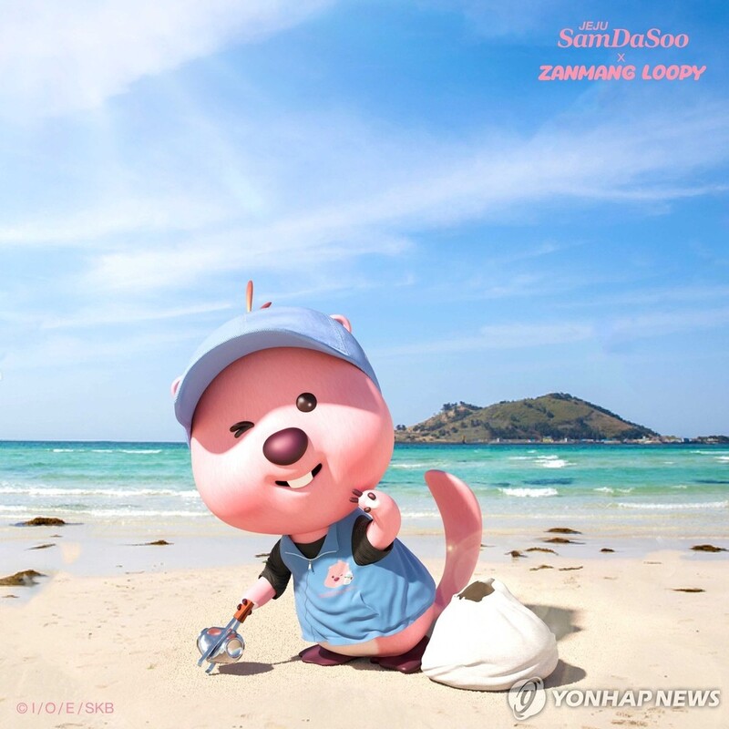 제주 여행 온 '잔망루피' 삼다수와 포즈…바닷가서 플로깅도