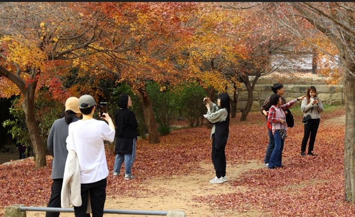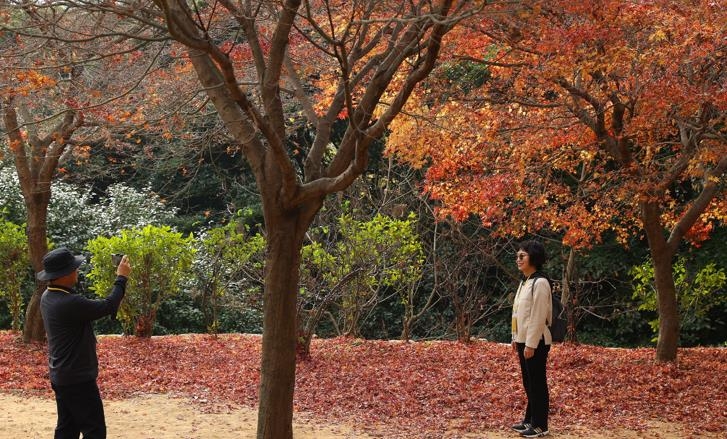 가족 또는 단체로 백련사를 찾은 이들은 가을을 보내기 아쉬운 듯 휴대전화 카메라를 연신 눌러댔다.