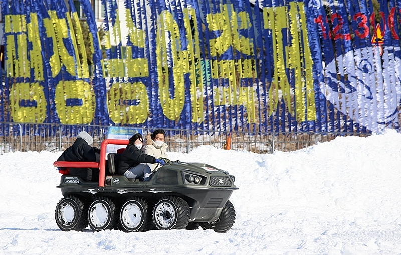팽이치기, 썰매 타기, 눈썰매 등 전통 놀이를 비롯해 스케이트와 스노우 래프팅, 얼음 자전거, 범퍼카, 얼음 카트 등 다양한 놀이도 즐길 수 있다.