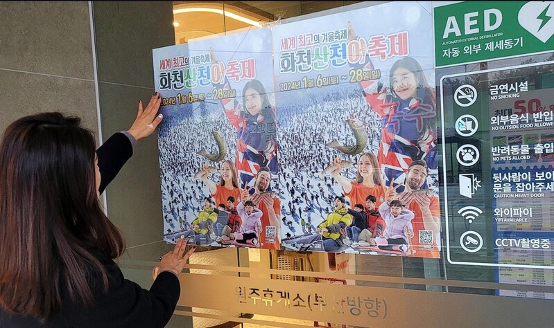 특히 축제가 한 달여 앞으로 다가오자 영화관 스크린과 버스 측면에 산천어축제를 알리는 활동에도 힘을 쏟고 있다.