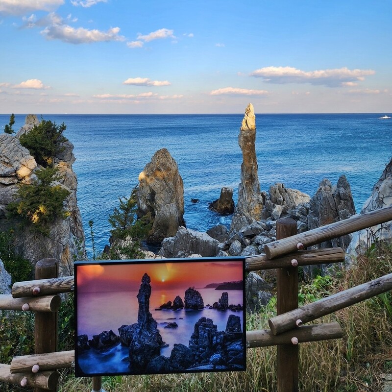 전시회 감상과 함께 추암 출렁다리에 올라 촛대바위를 보며 바다 위를 걷는 듯한 느낌과 해안 절경인 석림, 바다가 어우러져 마치 한 폭의 풍경화를 보는 듯한 감성에 빠지게 된다.