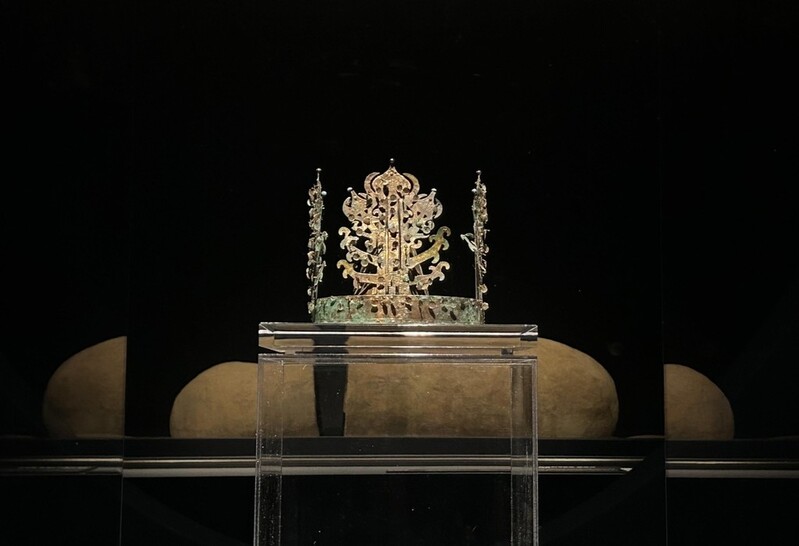 | ▲ 국보 '나주 신촌리 금동관'과 9호 무덤 출토품 (나주=연합뉴스) 김예나 기자 = 14일 국립나주박물관 상설전시실에 국보 '나주 신촌리 금동관'과 9호 무덤에 묻힌 독널이 전시돼 있다. 2023.12.14