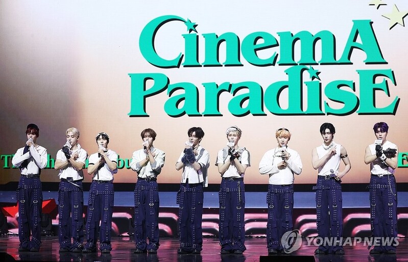 | ▲ 제로베이스원의 단체인사 (서울=연합뉴스) 진연수 기자 = 그룹 제로베이스원이 26일 오후 서울 용산구 블루스퀘어에서 열린 네 번째 미니앨범 '시네마 천국(CINEMA PARADISE)' 발매 쇼케이스에서 단체인사를 하고있다. 2024.8.26 jin90@yna.co.kr |