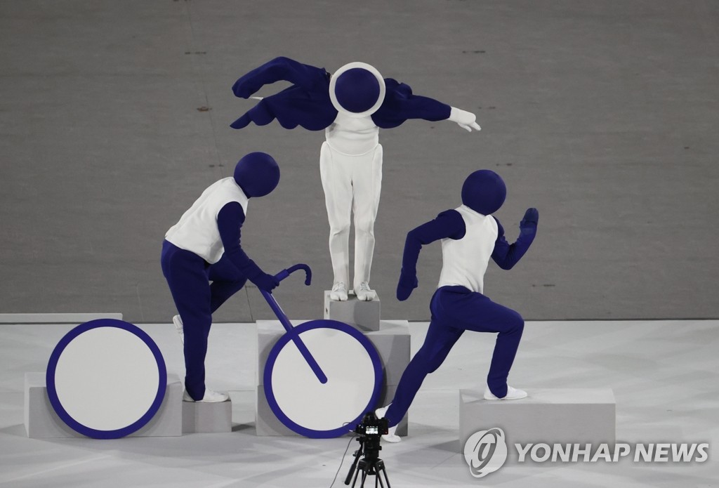| ▲ 2021년 7월 23일 일본 도쿄 신주쿠 국립경기장에서 열린 2020 도쿄올림픽 개막식에서 배우들이 올림픽 경기 종목 픽토그램을 표현하고 있다. [연합뉴스 자료사진] |