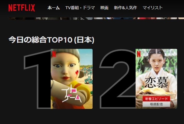 | ▲ 넷플릭스 일본판에서 오징어 게임1위 [넷플릭스 일본판 화면 캡처, 재판매 및 DB 금지] |