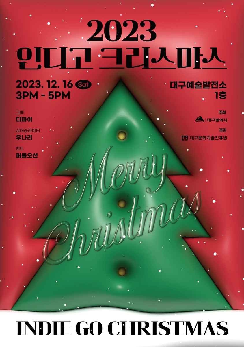 공연에선 디파이, 우나리, 퍼플오션 등 지역에서 활동하는 역량 있는 인디 밴드 3팀이 참여해 크리스마스 캐럴을 비롯해 연말 분위기를 느낄 수 있는 대중적인 곡 등을 들려준다.