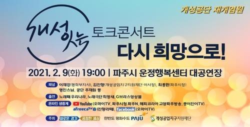 파주 운정행복센터에서 열린 콘서트는 이재강 경기도 평화부지사, 최종환 파주시장 등이 패널로 참여해 '개성공단의 의미와 가치', '개성공단 재개는 남북선언 이행의 지름길', '개성 잇는 희망의 약속' 등을 주제로 다뤘다.