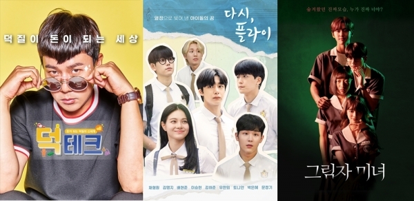 '다시, 플라이'는 명문 예술고등학교 내 K팝 동아리 이야기를, '그림자 미녀'는 학교에서는 왕따이지만 소셜미디어(SNS)에서는 스타로 살아가는 한 여고생의 이야기를 그린 드라마다.