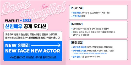 ▲ 플레이리스트, 신인 배우 오디션 = 콘텐츠 스튜디오 플레이리스트가 30일부터 신인 배우 공개 오디션 신청을 받는다.