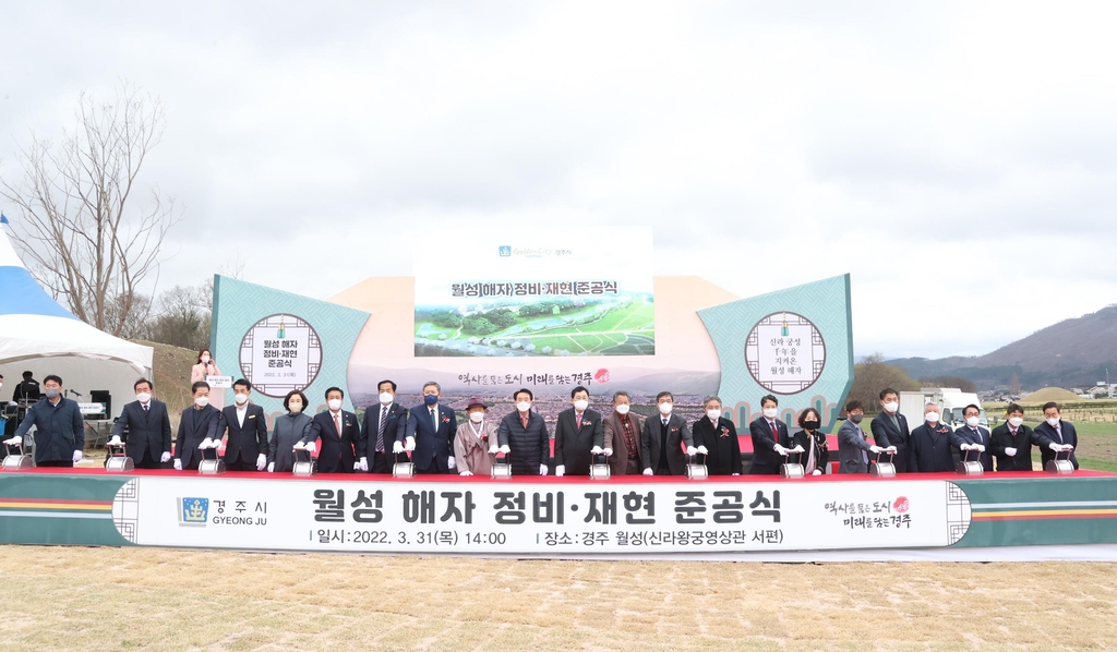 경주시는 31일 오후 인왕동 신라왕궁 영상관 서편에서 '월성 해자 정비·재현사업' 준공식을 했다.
