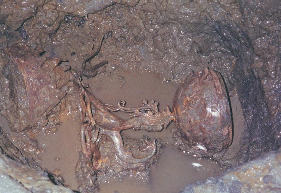 | ▲ 백제 금동대향로 출토 당시 모습 국립부여박물관이 부여 능산리 절터 유적 관련 발굴 조사 결과를 정리한 보고서 일부 [국립부여박물관 제공. 재판매 및 DB 금지] |