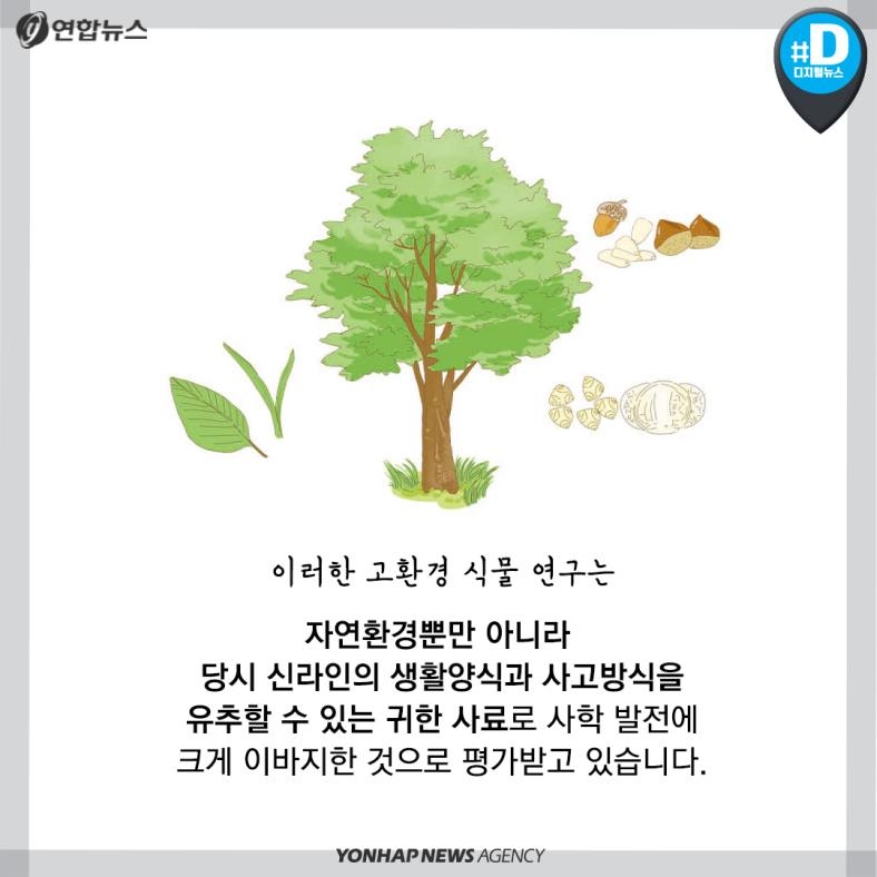 이러한 고 환경 식물 연구는 자연환경뿐만 아니라 당시 신라인의 생활양식과 사고방식을 유추할 수 있는 귀한 사료로 사학 발전에 크게 이바지한 것으로 평가받고 있습니다.