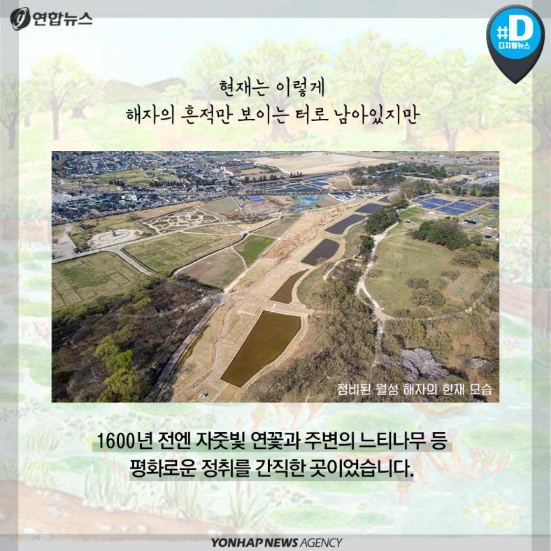 현재는 이렇게 해자의 흔적만 보이는 터로 남아있지만 1천600년 전엔 자줏빛 연꽃과 주변의 느티나무 등 평화로운 정취를 간직한 곳이었습니다.