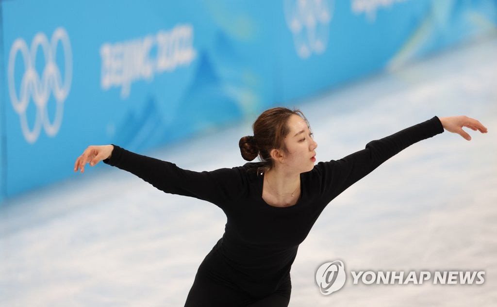 | ▲  South Korean figure skater Kim Ye-lim practices at Capital Indoor Stadium in Beijing on Feb. 16, 2022, the eve of the free skate in the women's singles competition at the Beijing Winter Olympics. (Yonhap) |