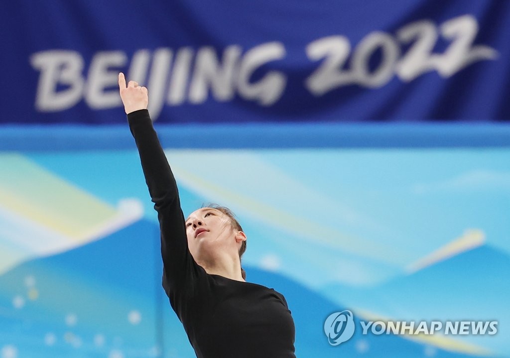 | ▲  South Korean figure skater You Young practices at Capital Indoor Stadium in Beijing on Feb. 16, 2022, the eve of the free skate in the women's singles competition at the Beijing Winter Olympics. (Yonhap) |