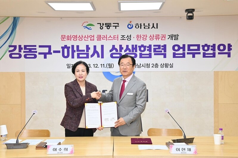 이에 이수희 강동구청장은 "하남시의 글로벌 공연장 유치와 연계해 한강 변 상류권 규제를 해소할 수 있는 방안을 다각적으로 검토하겠다"라고 말했다.