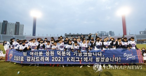 SEOUL, Nov. 29 (Yonhap) -- Suwon FC earned a promotion back to the top competition in South Korean football on Sunday, thanks to a last-second penalty that punctuated a dramatic finish.