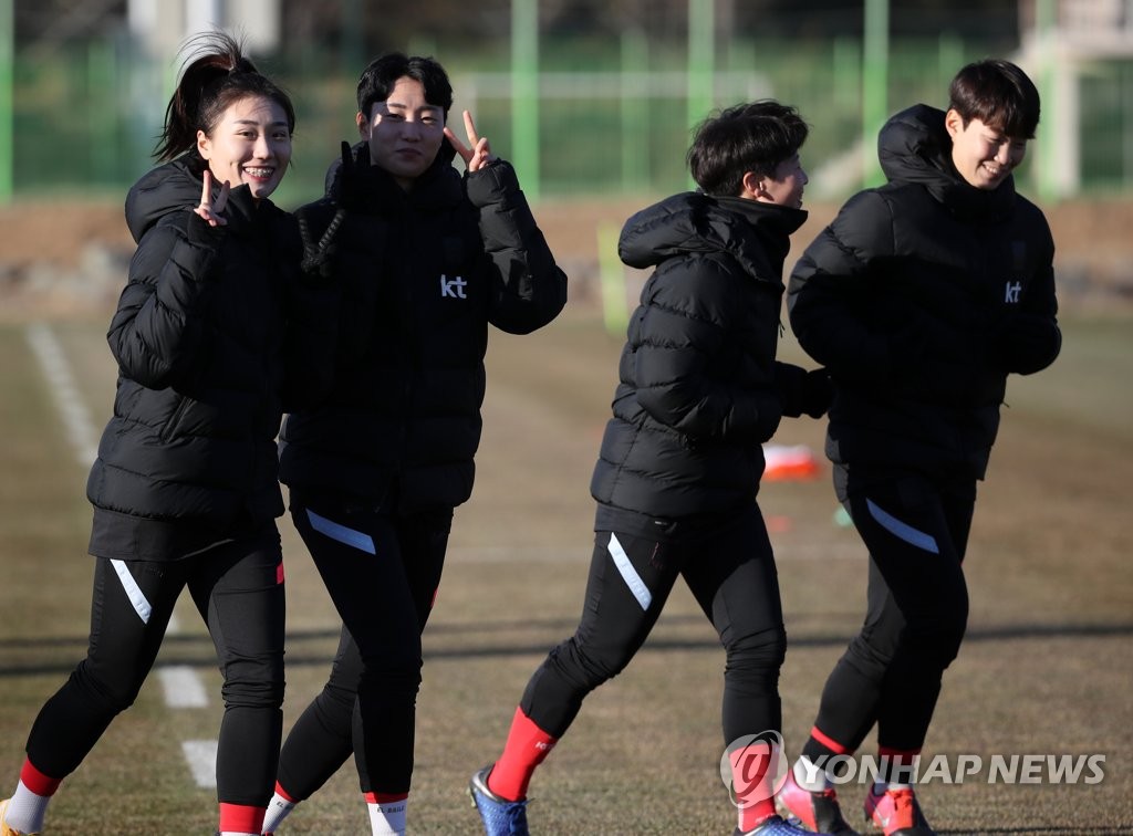 | ▲ In this file photo from Jan. 19, 2021, members of the South Korean women's national football team train at Gangjin Sports Complex in Gangjin, 410 kilometers south of Seoul, in preparation for Olympic qualifying matches against China. (Yonhap) |
