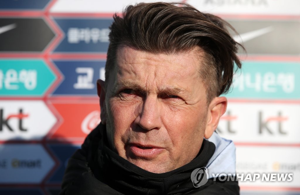 | ▲ In this file photo from Jan. 19, 2021, Colin Bell, head coach of the South Korean women's national football team, speaks to reporters before practice at Gangjin Sports Complex in Gangjin, 410 kilometers south of Seoul. (Yonhap) |