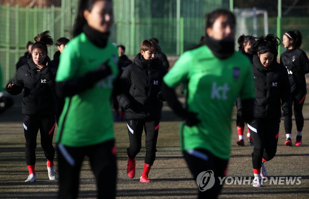 | ▲ In this file photo from Jan. 19, 2021, members of the South Korean women's national football team train at Gangjin Sports Complex in Gangjin, 410 kilometers south of Seoul, in preparation for Olympic qualifying matches against China. (Yonhap) |